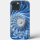Beau art fractal abstrait bleu et chic couleur girly avec un nom personnalisé cadeau pour n'importe quel iPhone 13pro max coque