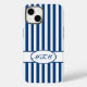 Coques Case-Mate iPhone Bleu rayures automnales avec monogramme