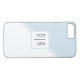 Coque géométrique bleu clair et blanc iPhone 8/7 avec monogramme. L'avant comprend deux bandes diagonales, une bleue-gris et une blanche qui séparent la carte en deux triangles. Un carré blanc est au centre avec votre monogramme.