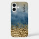Coques Case-Mate iPhone Blue Gold Glitter Leopard Print Monogram Name