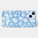 Customize this blue shell pattern iPhone 15 plus case with your your name in a trendy modern CAP font in blue on white. It's so modern and beachy!