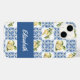 Serene blue tile French country lemon pattern iPhone case featuring a customizable name, to complement your style in the yoga studio and beyond. Personalize with your name or that of a loved one.