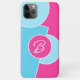 Beau rose chaude et contemporaine, pastel clair, bleu turquoise d'aqua, et cercles blancs motif. Avec la place de customiser ou de personnaliser avec un nom monogramme ou initial de votre choix. Conception amusante, élégante, élégante et éclectique pour la fashionista artistique, la diva de mode artsy, populaire branchiste, style rétro vintage, et amoureux abstrait de motifs numériques géométriques qui veut protéger leur téléphone de la poussière et la saleté, l'usure et la déchirure. Cette conception est disponible pour iPhone 6, 7, et 8 Plus, 10 ou X, XR, XS, 11, 12, 13 Mini, 14, et 15 coques de téléphonie mobile Pro Max. Montrez votre style, regardez à la mode et sentez élégant avec un design unique sur un appareil mobile de votre choix.