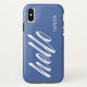 Coques Case-Mate iPhone Bonjour Script avec nom personnalisé bleu