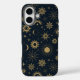 Un élégant motif céleste avec des soleils dorés, des lunes et des étoiles contre un profond arrière - plan noir, parfait pour un boîtier téléphonique luxueux d'inspiration cosmique.