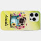 Un Joli iPhone En Marbre Jaune 15 Pro Max Conçu Avec Un Carlin Chiot Dans Un seau Avec Fleurs Vous Pouvez Personnaliser