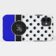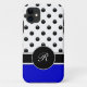 Cas de l'iPhone 5 de monogramme de point de polka des hommes ou des dames avec la couleur d'accent noire et blanche d'arrière - plan et de bleu que vous pouvez customiser. La construction légère se conforme à votre iPhone dans le style et a des ouvertures pour tous les connexions et boutons.