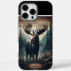 Un orignal majestueux aux gros bois trône dans un écrin de forêt, avec une enseigne en bois portant le nom de Charles en dessous.
