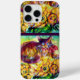 Chat coloré, expressif avec des tournesols peinture acrylique de Bulgan Lumini.