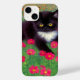 coque iphone avec un chat tuxedo Gustav Klimt ! Cette adorable petite chatte noire et blanche est installée dans un champ de fleurs rouges, bleues, blanches et oranges. Un cadeau génial pour les amateurs d'art amoureux des chats et autrichiens !