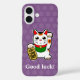 Ce cas de téléphone Maneki Neko apportera une bonne fortune à votre téléphone! C'est un charme de bonne chance populaire au Japon ! L'arrière - plan hexagonal violet est un motif japonais classique "kagome", qui est un design qui imite le tissage du bambou dans un panier. Utilisez l'éditeur de personnalisation pour sélectionner une autre couleur de coque ! Le texte dit "Bonne chance !" en bas, mais peut être customisé à dire ce que vous voulez !