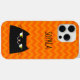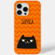 Drôle, mignon, kawaii coque iphone de chat noir avec monogramme - nom et motif de chevron orange moderne. Un cadeau parfait pour n'importe quel amoureux des chats !