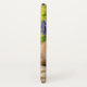 Un beau chaton sur une roche dans un jardin fleuri. Un jeune chat redtabby mignon de bébé avec les yeux bleus merveilleux, photo prise par Katho Menden. Cet iPhonecase léger est une idée de cadeau pour des amants de chat et d'animal familier. http://www.zazzle.com/kathom_photo