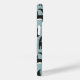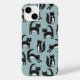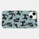 Chats tuxedo noirs et blancs mignons qui vaquent à leurs affaires. Un motif amusant sur un arrière - plan bleu moyen, parfait pour les amoureux des animaux et des animaux. Art original de Nic Squirrell.