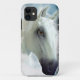 Un cheval arabe blanc dressé sur fond de lune et de nuages