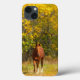 Un beau cheval de châtaignier se promenant dans le feuillage d'automne en fait un étui téléphonique spécial et unique.