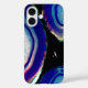 Élégant et occultant boîtier de téléphone dispose d'une image vibrante de géode agate tranches dans les tons lumineux de l'indigo, bleu, et violet sur un arrière - plan noir. Personnalisez avec vos initiales ou monogrammes cachés dans le design en lettres blanches classiques.