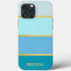 Ce design sophistiqué présente un ensemble de rayures bleues dans des tons variés, élégamment accentué par des lignes dorées épurées. Personnalisez-le avec votre nom pour une touche unique qui allie style moderne et esthétique intemporelle. Idéal pour ceux qui apprécient un look raffiné et contemporain, ce coque offre à la fois une protection haut de gamme et un accessoire élégant et personnalisé pour votre iPhone.