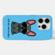 Le dessin est illustré d'un joli dessin animé d'un bulldog français de couleur bleu marine portant un collier bleu et des lunettes de soleil d'aviateur noir. Police et couleur arrière - plan et être changée. Différentes versions de bulldog en français coloré disponibles.