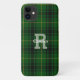Coque iphone élégant réalisé dans le beau motif écossais classique en tartan vert, jaune, noir du clan MacArthur. Personnalisez le grand monogramme vert clair et le petit texte blanc pour répondre à vos besoins. Fabrique une excellente idée cadeau personnalisée.