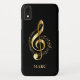 Élégante clef dorée triplée avec des notes sur arrière - plan noir. monogramme facultatif