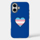 iPhone 11 coque avec un symbole de coeur dans les couleurs du drapeau de la fierté trans. Design rose, blanc et bleu