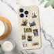 Créez votre propre coque iphone photo-collage personnalisé. Ajoutez simplement 9 de vos photos préférées à ce modèle de collage avec des cadres de style photo instantanée et un arrière - plan à damiers rétro jaune.