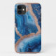 Elégant design abstrait de forme de géode bleue avec des détails d'or rose dynamiques, avec un espace central circulaire vierge idéal pour la personnalisation. Parfait pour les arrière - plans, invitations ou projets visuels créatifs.