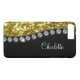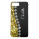 Caisse étincelante chique de portable pour l'iPhone créé avec l'espace de monogramme que vous pouvez personnaliser avec vos propres initiales de nom ou de monogramme décorées des bijoux de fausse pierre et des parties scintillantes simulés d'or comme art d'arrière - plan qui ajoute un contact des tape-à-l'oeil et du charme à votre dispositif.