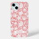 Customize this coral shell pattern iPhone 15 plus case with your your name in a trendy modern CAP font in coral on white. It's so modern and beachy!