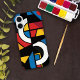 Design abstrait géométrique moderne en noir, rouge, bleu et jaune angulaire avec des courbes blanches audacieuses pour décliner les formes pointues. Un coque coloré et unique pour tous !
