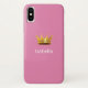 Couronne dorée sur rose or arrière - plan iPhone X Coque. Nom prêt à être personnalisé.