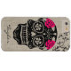 Faites l'envie de vos amis avec ce design branché hipster de crâne à sucre. Un crâne sucré aux coeurs, aux vignes et aux roses. Conception cool urbaine amusante avec des tourbillons ornés et des motifs de texture vintage. Célébrez la Journée des Morts au Mexique ou Dia de los Muertos avec ce squelette unique calavera. Veuillez noter que l'arrière - plan est une texture imitation burlap imprimée, la couverture téléphonique n'est pas faite de toile burlap. Cliquez sur Customiser pour ajouter votre monogramme ou votre nom et créer votre propre design unique d'un genre unique! Par Marisu Valencia™.