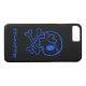 Un crâne bleu néon et une illustration de la croix avec un oeil en forme de coeur. Arrière - plan noir. Personnalisez avec votre propre nom.