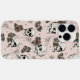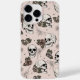 Dessiné à la main dans l'encre noire, cet élégant étui téléphonique présente un beau motif de crânes, de roses et de toiles d'araignée dans des tons crème et rougis, le tout contre un élégant arrière - plan rose vif.
