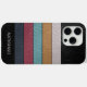 Classy, fun, contemporain ivoire gris, moutarde ocre jaune, turquoise vert turquoise, vintage rouge rose, et bleu ardoise foncé rétro chic rayures horizontales design motif sur un arrière - plan de texture en faux cuir. Avec place pour customiser ou personnaliser avec un nom, monogramme ou initiales de votre choix. Housse originale et cool élégante pour le branché branché branché branché et amateur de mode, look branché style motif qui veut protéger son téléphone contre la poussière et la saleté, l'usure et la déchirure. Ce design est disponible sur une variété de décoratifs, à la mode, artistique, tendance, unique moderne, et cool Apple iPhone 6, 7 et 8, 10 ou X, XR, XS, 11, 12, 13 Mini, 14, 15 Plus, et Pro Max coques de téléphone cellulaire. Montrez votre style, regardez à la mode, et sentez élégant avec un design unique sur un accessoire mobile de votre choix.
