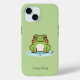 Un étui de téléphone vert avec illustration d'une grenouille mignonne sur son étang et texte personnalisable ci-dessous! Il pourrait être parfait pour un enfant ou un ami qui aime l'animal et la nature de Kawaii!