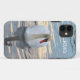 Ce boîtier de téléphone présente une photo d'un cygne blanc muet solitaire sur l'eau bleue avec des ondulations et son reflet. Personnalisez ce coque protecteur personnalisé avec vos initiales monographiques.