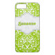 Damask motif chaux vert, blanc et gris cadre avec nom mignon girly iPhone 7 coque. Un design élégant entièrement personnalisable, contemporain, moderne et rétro à la fois. Vous pouvez le personnaliser et ajouter votre monogramme, vos initiales ou tout autre texte. Vous pouvez choisir parmi plus de 200 couleurs arrière - plans et changer le vert en couleur de votre goût. Design chic et tendance, avec une touche vintage.