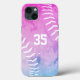 Ce coque iphone de softball féminin mignon dispose d'un softball minimaliste (représenté uniquement par les points de la balle en blanc) surplombant un arrière - plan de dégradé de look rose à bleu - personnalisez avec son numéro de maillot - par katz_d_zynes