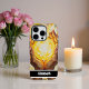 Conception vibrante de boîtier de téléphone représentant des mains tenant un cercle jaune éclatant, mettant en valeur la créativité et la chaleur. Le détail personnalisé du nom ajoute une touche d'individualité, ce qui en fait un excellent choix d'accessoires ou de cadeaux.