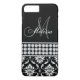 Coques Case-Mate iPhone Diamants imprimés par damassé noire personnalisés