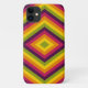 Cette image présente un motif géométrique et dynamique, composé de formes diamant concentriques. Chaque diamant est constitué de bandes audacieuses alternant le jaune, l'orange, le magenta, le vert olive et le violet profond. Les lignes rayonnent d’un point central, créant un effet visuel qui attire les yeux du spectateur vers le centre. La répétition symétrique et les couleurs vives lui donnent une ambiance moderne, rétro et légèrement psychédélique.