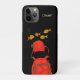Striking illustration of a scuba diver in bright orange gear surrounded by golden fish against a deep black background. This bold and artistic iPhone case captures the wonder of underwater exploration, perfect for ocean lovers and diving enthusiasts.