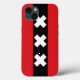 iPhone 13 Coque avec design avec drapeau d'Amsterdam, capitale de Pays-Bas, drapeau rouge et noir avec trois croix blanches de Saint Andrew au centre
