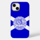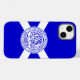 iPhone 14 Coque avec l'un des deux drapeaux officiels de Charlotte, Caroline du Nord. Un drapeau bleu avec un sautoir blanc (Croix de Saint-André) et un sceau