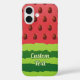 Drapeau de pastèque rouge et vert avec rayures et graines. Texte personnalisé.