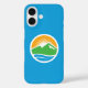 iPhone 14 Coque avec un design avec le drapeau de Provo, Utah. Un drapeau bleu avec le logo de Provo City au centre. Le logo représente le lac de l'Utah et les sommets de montagne avoisinants avec le soleil levant en arrière - plan