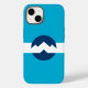iPhone 14 Coque avec un design avec le drapeau d'Ogden, Utah. Un drapeau bleu et blanc avec des sommets au centre