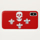 Banderole de pirate rouge blanc Jolly roger avec trois fleur de lise.